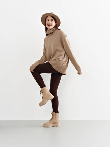 С чем носить ботинки на шнуровке — стильных сочетаний множество. Примерьте короткое трикотажное платье в сочетании с цветными колготками, наденьте плотные леггинсы, а поверх них — вязаные носки. Гармонично такая обувь будет смотреться и джинсами, и с брюками, поэтому здесь можно смело экспериментировать и вдохновляться стилевыми приемами, которые предлагают современные марки.