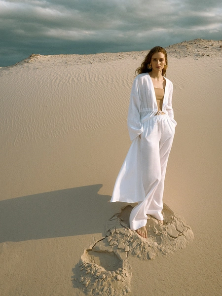 Российский премиальный бренд СHARUEL, фокусирующийся на базовом гардеробе для современных женщин, представил летний лукбук, который может вдохновить вас на персональную фотосессию. Пески, небо и вода — три основных элемента визуальной концепции съемки. Экоуклон коллекции отражен в льняных тканях, натуральных цветах и естественных фактурах.