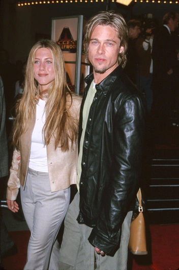 В конце 90-х начинается роман с Дженнифер Энистон, звездой сериала «Друзья». В то время на мероприятиях образы Брэда становятся заметно элегантнее: джинсы и цветные рубашки уступают место костюмам. Но в повседневной жизни эта пара становится олицетворением стиля 90-х и носит простые вещи: мешковатые штаны-карго, вернувшиеся на подиумы в 2022-м, куртки-бомберы, одинаковые очки и вместе с ними похожий цвет волос. Всю антологию моды этих лет можно было отследить, глядя на этих счастливчиков. Идиллия в отношениях и в образах продолжалась до 2005 года, пока на съемках «Мистер и Миссис Смит» актер не встретил Анджелину Джоли.