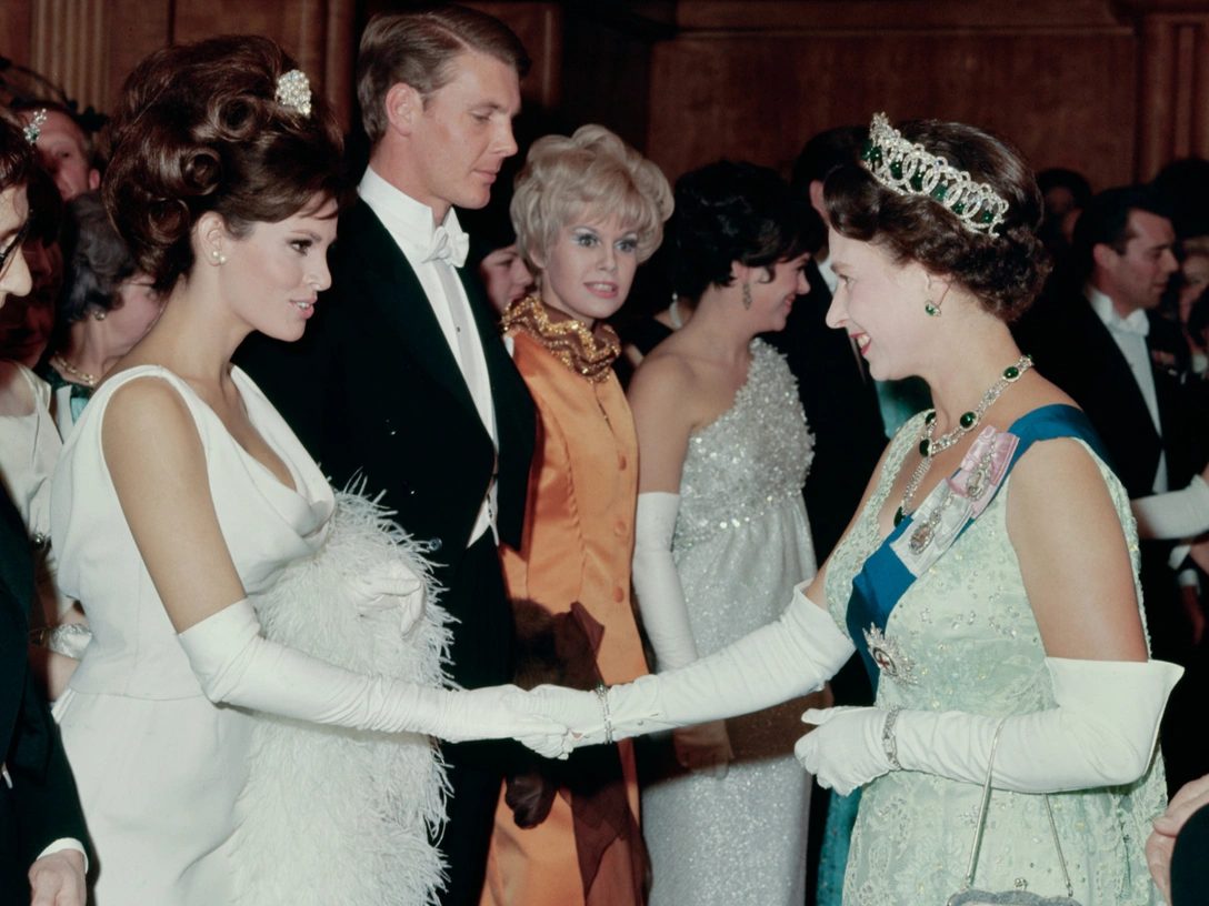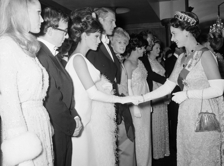 Элегантное платье белого цвета, длинные оперные перчатки и пышное боа из перьев — главные составляющие элегантного и уместного образа для встречи с королевой. Именно такой наряд выбрала актриса Ракель Уэлч для премьеры фильма «Рожденная свободной», где и состоялось знакомство британского монарха и американской суперзвезды.