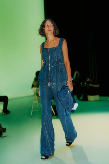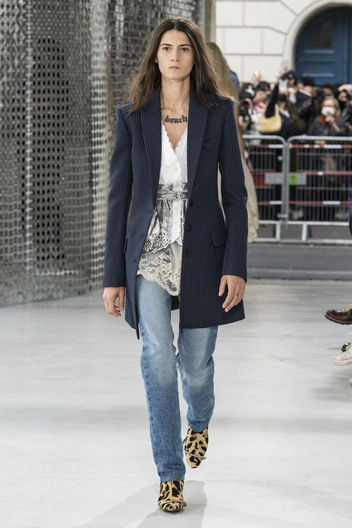 Не стоит сразу же вздыхать и отметать это модное возвращение в свой гардероб — в этом сезоне есть несколько очень симпатичных стилизаций. Вдохновитесь показом Etro и их тандемом широких джинсов с низкой посадкой, чувственного и трендового бралетта и пиджака. Вместо бра можно надеть мужскую рубашку или же по полной отыграть 2000-е, составив аутфит из джинсов с заниженной талией, топа с акцентным лого, приправив это сумкой-багетом и цветными очками.