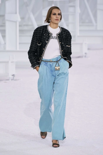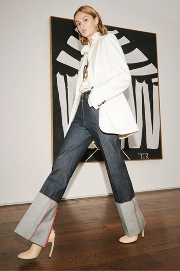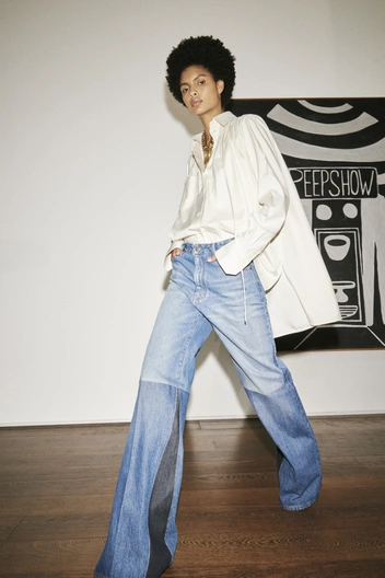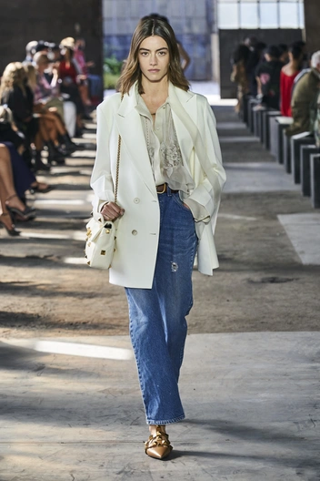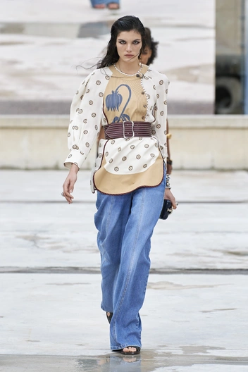 Весна-лето 2021 еще раз подтверждает неослабевающую тенденцию на непринужденность и свободные силуэты. И джинсы — не исключение. Причем ширина брючин и посадка могут варьироваться. Если такой фасон вам импонирует, экстра-объем от Chloé вас точно не оставит равнодушной.