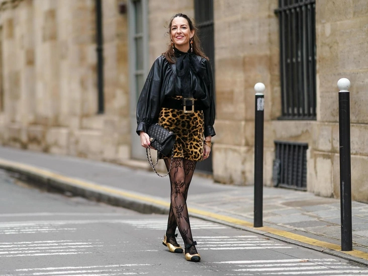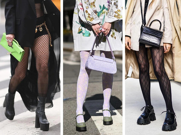 Изящные ажурные модели стали мастхэвом этой весны. Их звездные девушки надевают под вечерние платья со смелыми разрезами, мини-юбки или вовсе выходят только в них, не надевая ничего больше. Понимаем, что в реальной жизни такой тренд может быть для многих не понятен, поэтому предлагаем модное решение: наденьте укороченные прямые брюки вместе с ажурными колготками и подберите к ним кожаные остроносые туфли или обувь с трендовым квадратным мысом. Если вам хочется одеться сексуально и смело, примерьте такие модели с кожаной юбкой — сочетание материалов будет смотреться выигрышно и стильно.