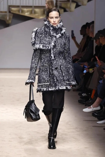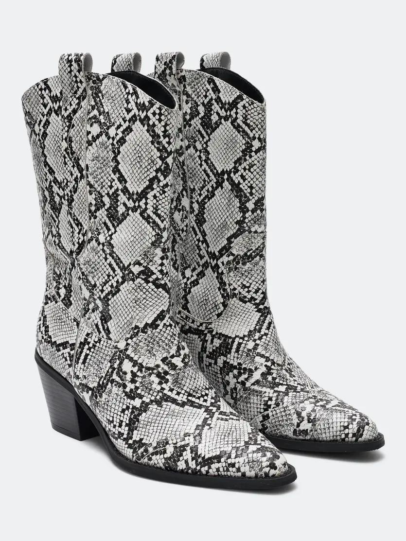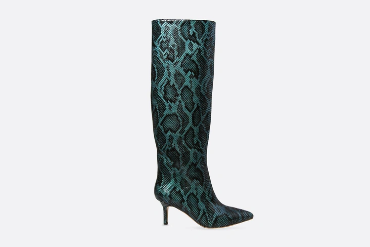 Как стилизовать такие сапоги? Тут нужно придерживаться константы — яркие принты всегда уравновешиваем чем-то однотонным. Для вдохновения обратитесь к тому же показу Khaite: модели носят змеиный принт с пальто благородного бежевого оттенка. Смотрится роскошно, а главное — легко адаптировать к жизни!