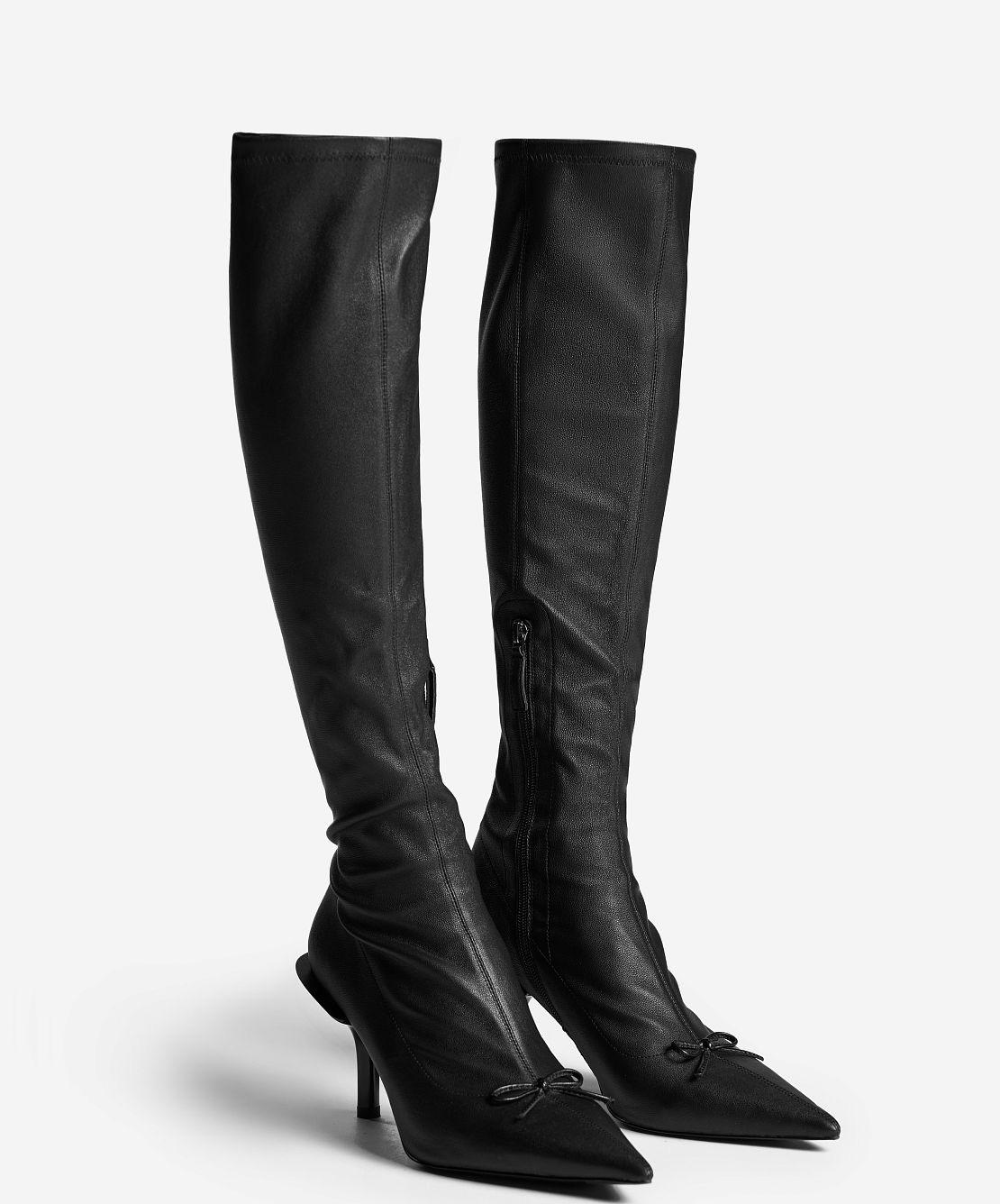 Как носить такие сапоги? В отличие от всех других моделей, тут у нас развязаны руки — ведь классику проще всего интегрировать в гардероб. Проще всего они встраиваются в деловой гардероб: юбка- карандаш плюс свободная белая рубашка и образ готов. Но и есть и более нестандартная стилизация — например, с образами в спорт-шике. Подберите брюки из модала или трикотажа и сочетайте их с сапогами средней длины — выше щиколотки, и ниже колена. Наверх — модный бомбер в стиле 90-х (писали про него в нашем гиде: Какую верхнюю одежду купить на осень 2025: полный гид), в руки — трендовая в 2025 году сумка слоучи.