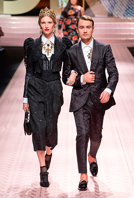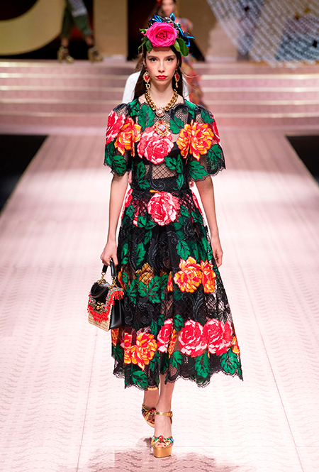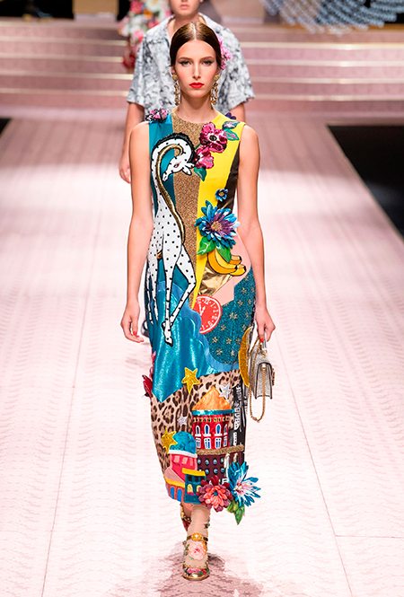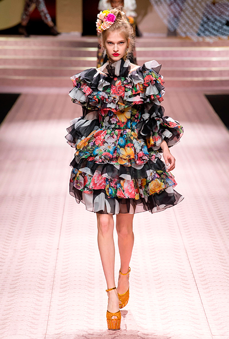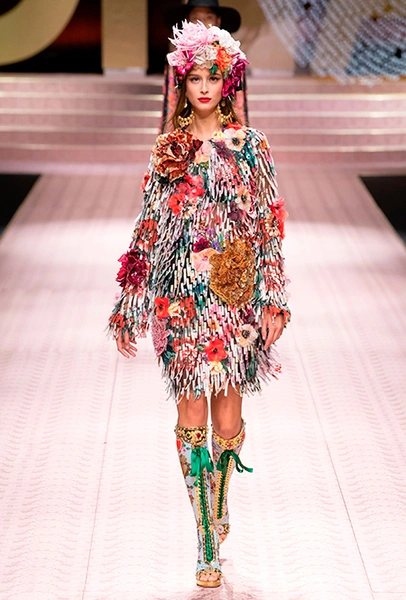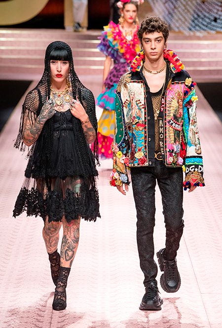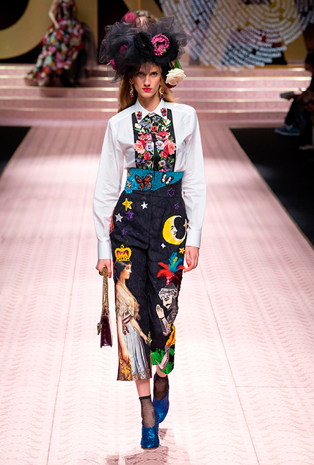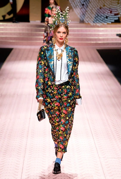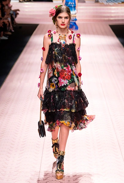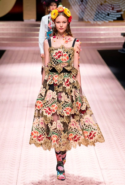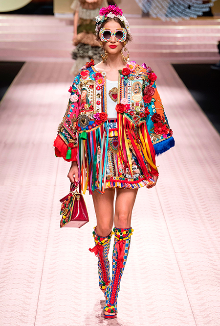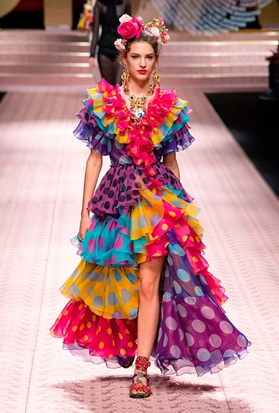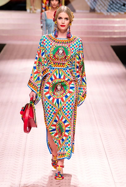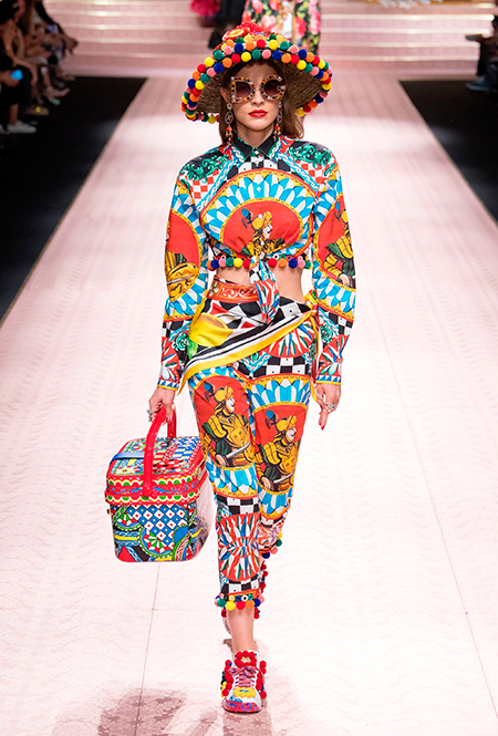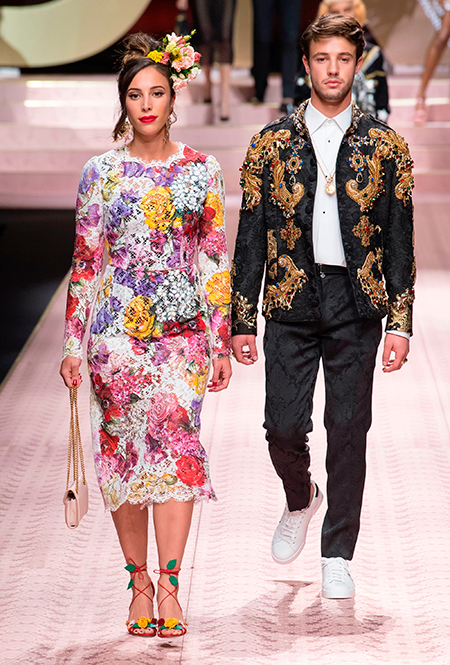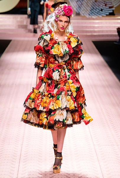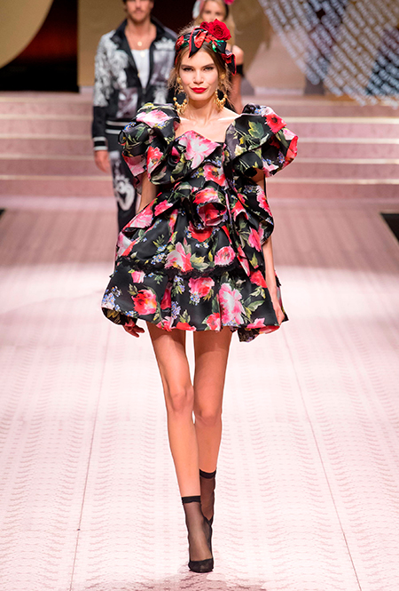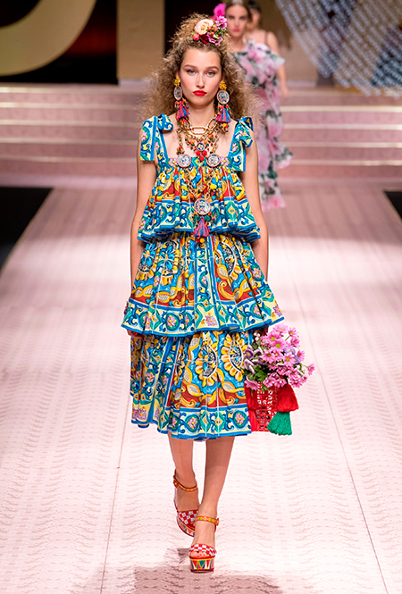 Сложно придумать более яркое завершение недели моды в Милане, чем красочный показ самого знаменитого итальянского дуэта дизайнеров. На этот раз лейтмотивом нового показа Доменико Дольче и Стефано Габбана стали главные составляющие ДНК их бренда. Поэтому в веренице образов (а их было представлено более 150) — знаковые хиты из предыдущих коллекций. Здесь и красочная майолика из осенне-зимнего показа 2016, и принты средиземноморской кухни, которой дизайнеры пели оды в 2017 году, и страстные испанки из весенне-летней коллекции 2015 — новое шоу вобрало в себя все самое лучшее, чем за последние годы вдохновлялся итальянский дуэт.