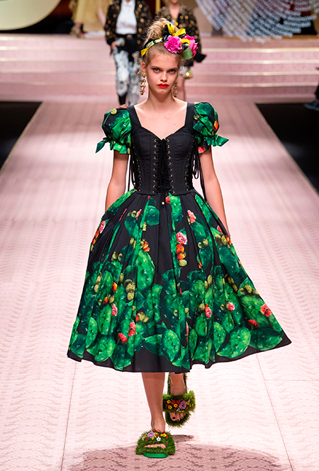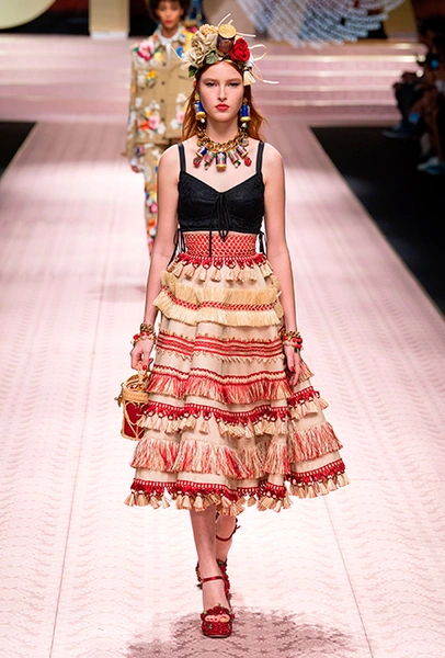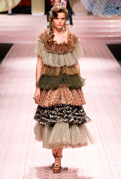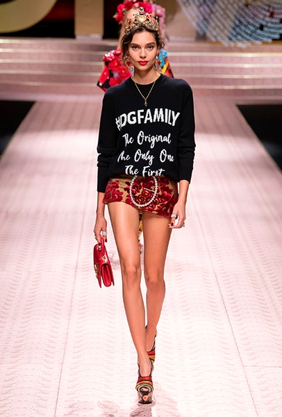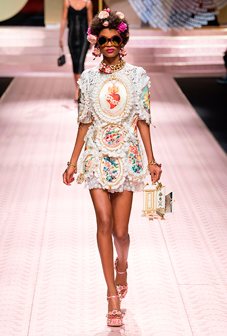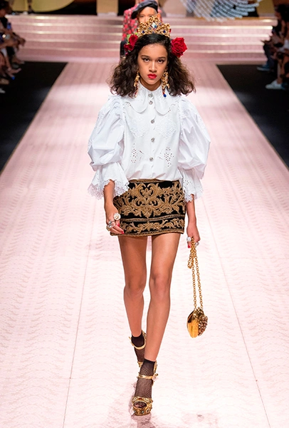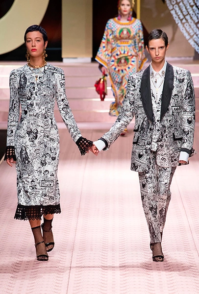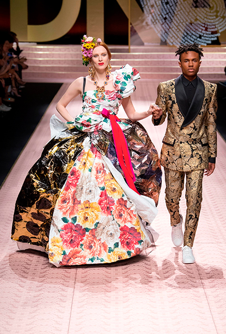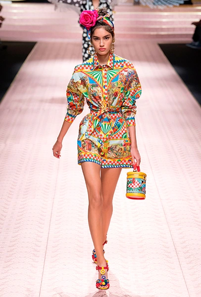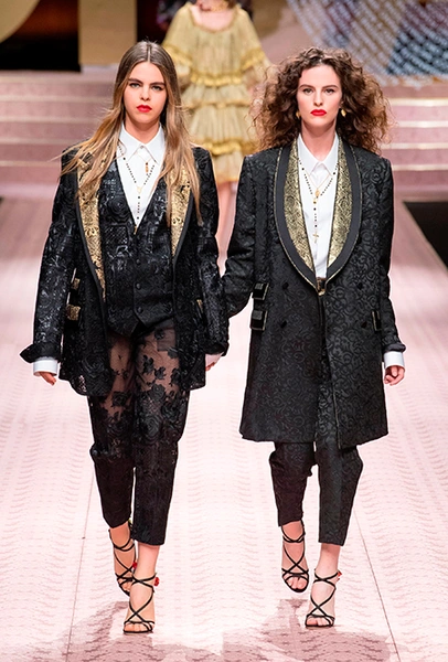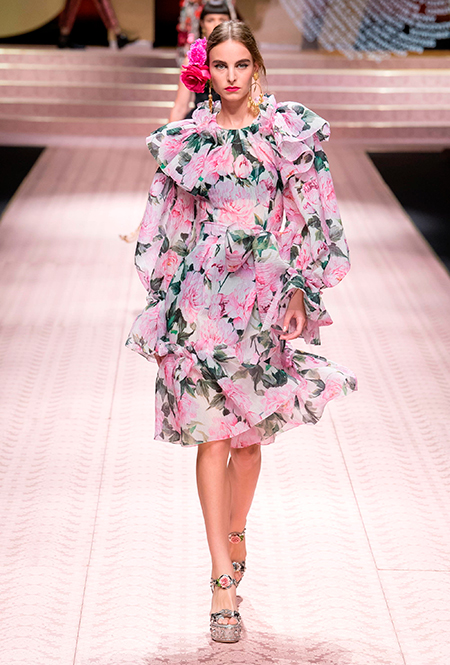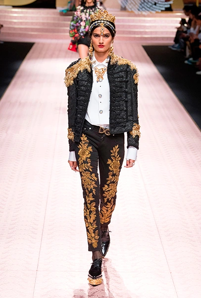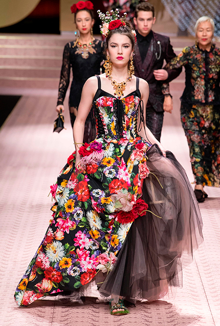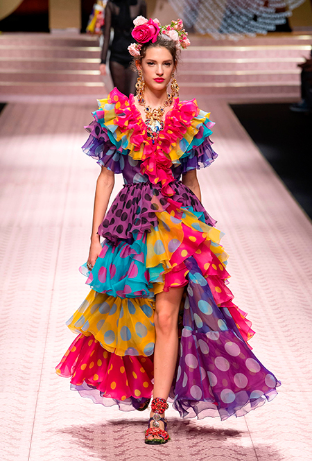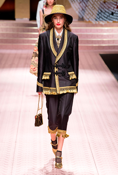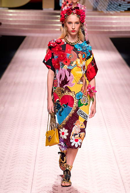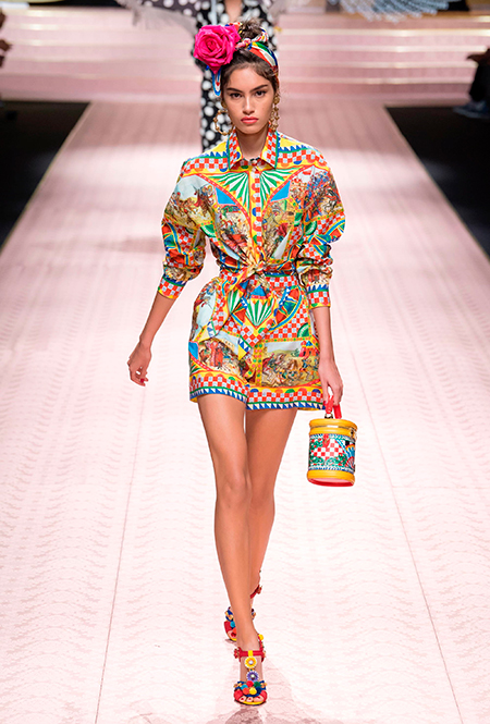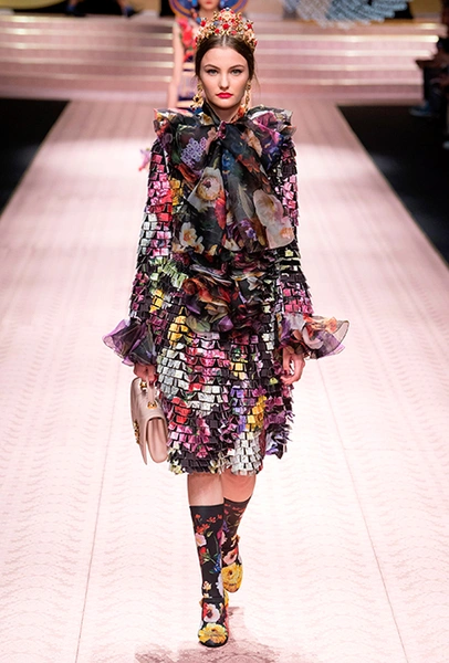 Сложно придумать более яркое завершение недели моды в Милане, чем красочный показ самого знаменитого итальянского дуэта дизайнеров. На этот раз лейтмотивом нового показа Доменико Дольче и Стефано Габбана стали главные составляющие ДНК их бренда. Поэтому в веренице образов (а их было представлено более 150) — знаковые хиты из предыдущих коллекций. Здесь и красочная майолика из осенне-зимнего показа 2016, и принты средиземноморской кухни, которой дизайнеры пели оды в 2017 году, и страстные испанки из весенне-летней коллекции 2015 — новое шоу вобрало в себя все самое лучшее, чем за последние годы вдохновлялся итальянский дуэт.