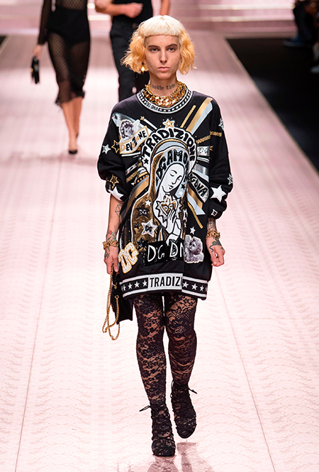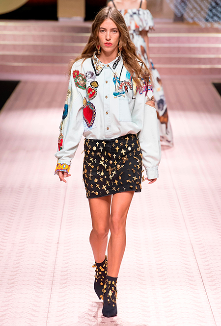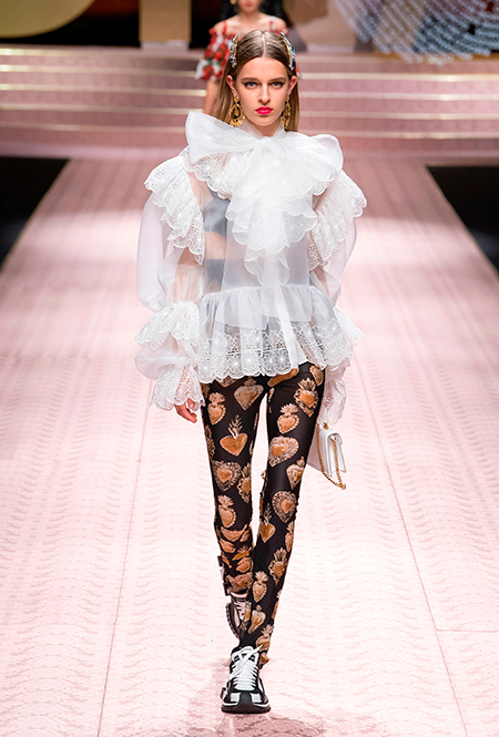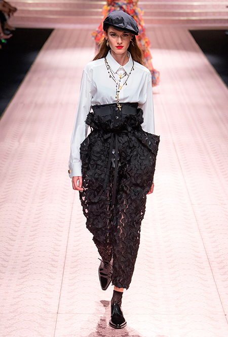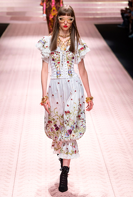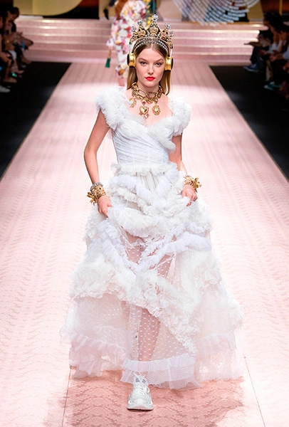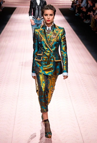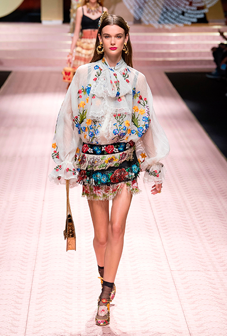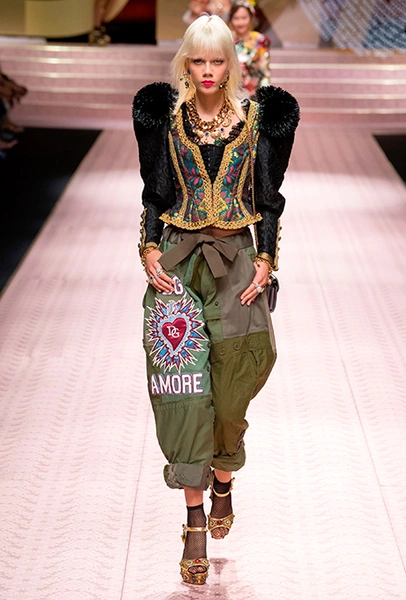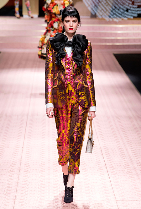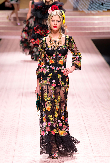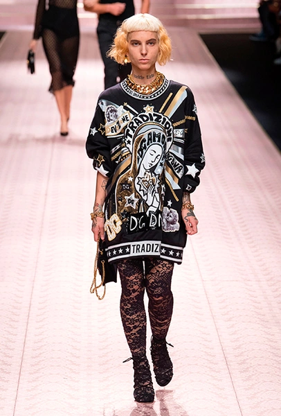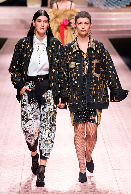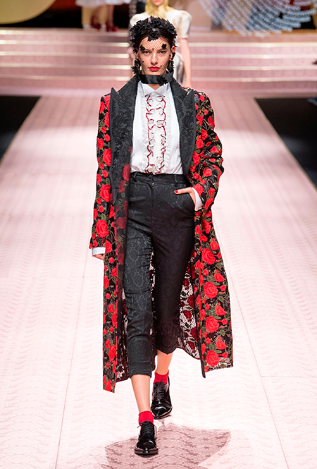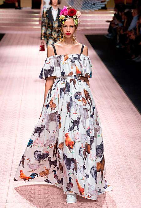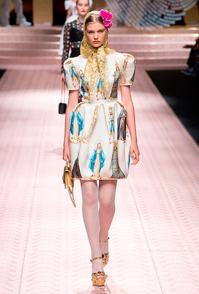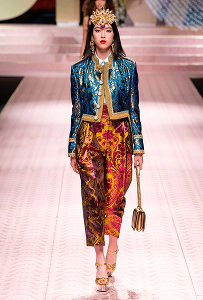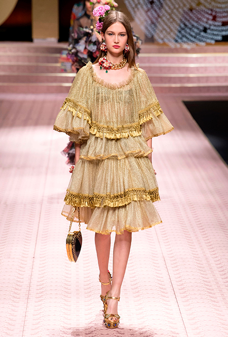 Сложно придумать более яркое завершение недели моды в Милане, чем красочный показ самого знаменитого итальянского дуэта дизайнеров. На этот раз лейтмотивом нового показа Доменико Дольче и Стефано Габбана стали главные составляющие ДНК их бренда. Поэтому в веренице образов (а их было представлено более 150) — знаковые хиты из предыдущих коллекций. Здесь и красочная майолика из осенне-зимнего показа 2016, и принты средиземноморской кухни, которой дизайнеры пели оды в 2017 году, и страстные испанки из весенне-летней коллекции 2015 — новое шоу вобрало в себя все самое лучшее, чем за последние годы вдохновлялся итальянский дуэт.