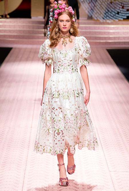 Ключевые детали коллекций практически не меняются из сезона в сезон, за что Доменико и Стефано и получили крепкую любовь, симпатию и преданность почитателей элегантного стиля: объемные аппликации в виде цветов на паутине кружев, россыпь камней на резных диадемах, католицизм, который кочует из коллекции в коллекцию, барокко, корсеты со шнуровкой, богато украшенные сундучки и невесомые каскадные платья в стиле эпохи Марии-Антуанетты.
