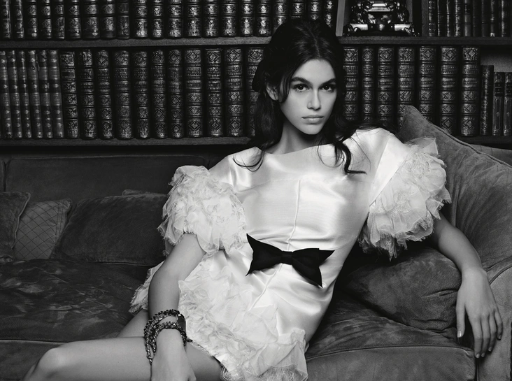 Фантастический успех 16-летней модели закрепляется и подтверждается новой рекламной кампанией Chanel, где она в апартаментах самой Коко Шанель примерила четыре сумки из весенне-летней коллекции бренда. Два варианта культовой 11.12, прямоугольная сумка из твида и кожи и, разумеется, новая фаворитка Карла — сумка Gabrielle Chanel: именно их и показывает Кайя, уютно расположившись на бархатной софе самой Великой Мадемуазель.