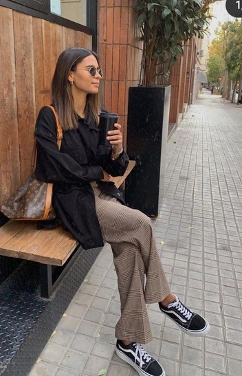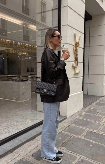 И второй — с более элегантными аутфитами. Нашли много примеров сочетания скейтерской обуви с сумками вроде Chanel, и, знаете — это работает. Кеды в таком луке как бы снижают градус формальности и показывают, что вы не относитесь к себе слишком серьезно.