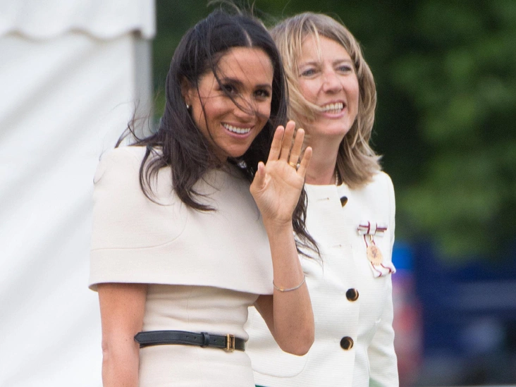 В 2018 году герцогиня посетила Чешир, чтобы открыть мост между городами Ранкор и Уиднес. То был первый год Меган в качестве члена БКС, так что девушка пока не привыкла к местному порывистому ветру. Может, поэтому дальше Меган выходила только со своим знаменитым пучком.