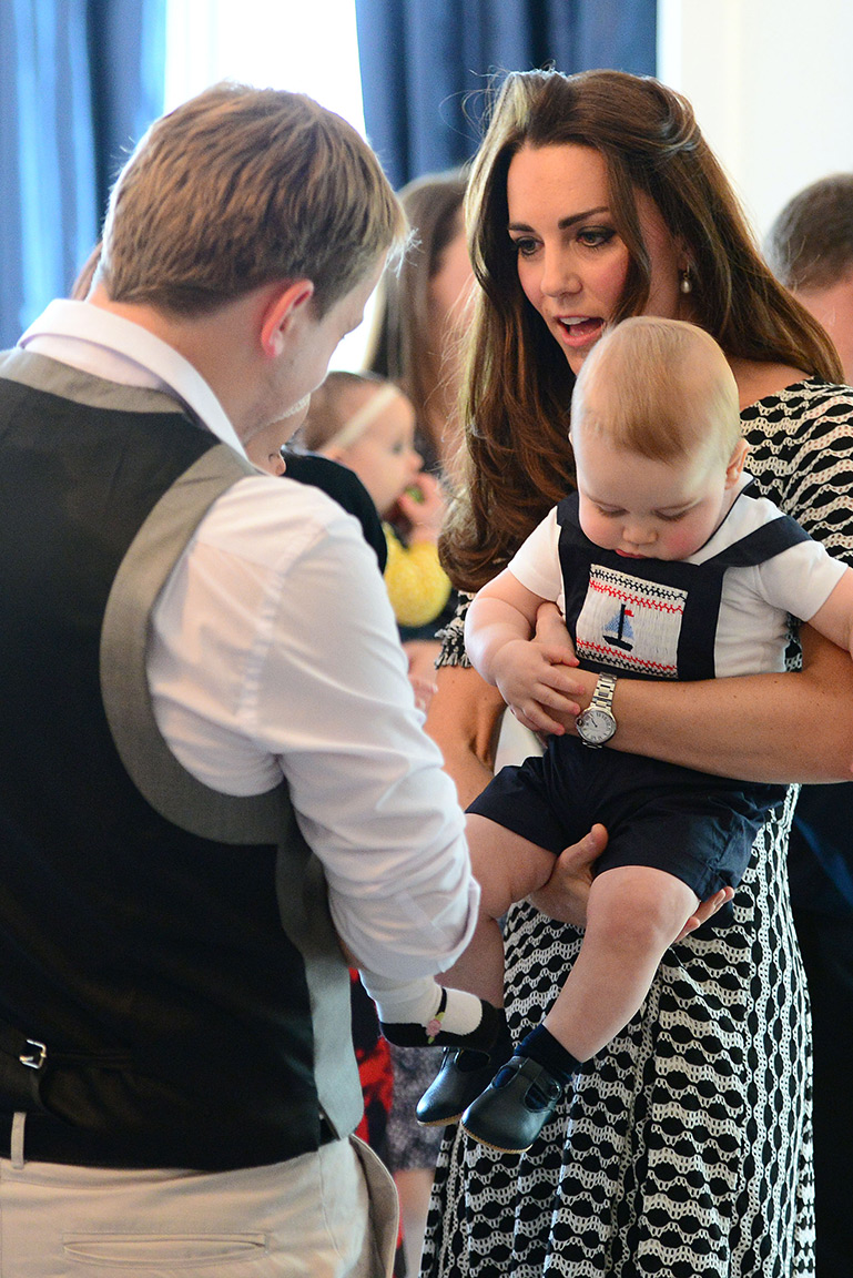 Во второй день своего путешествия королевская чета отправилась вместе с принцем Джорджем на его первое общественное мероприятие: будущий король играл с детьми в губернаторской резиденции, пока монаршие родители обменивались опытом по воспитанию детей с другими мамами и папами. Сотни психологов, наблюдавших видеозапись, признали, что видят в жестах маленького Джорджа повадки настоящего короля и лидера.