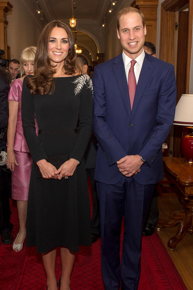В тот же день королевская чета посетила официальный прием в Доме правительства – резиденции генерал-губернатора Джерри Мейпара. Кейт выбрала черное платье из крепа Jenny Packham. На левом плече вручную серебряными нитями вышит лист папоротника – символ Новой Зеландии. Королева Елизавета II часто использует этот прием в своих поездках – включать в наряд символику страны, в которой она гостит. Кажется, Кейт не только поменяла гардероб в соответствии с ее требованиями, но и берет пример с королевы Великобритании.
