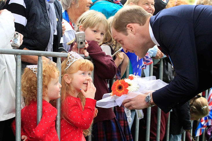 За монаршей семьей с площади наблюдало около пяти тысяч жителей. После официальной части Кейт и Уильям подошли к собравшимся пообщаться. Во время разговора с одной из матерей герцогиня заметила плачущего ребенка и подарила ему плюшевого мишку, а Уильям презентовал цветы очаровательной девочке с рыжими волосами.