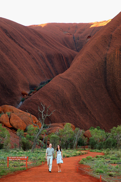 Кейт и Уильям собираются остаться в Улуру до вечера, чтобы посмотреть закат, который, по словам жителей, необычайно красив в этом месте.