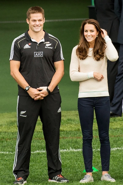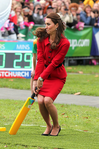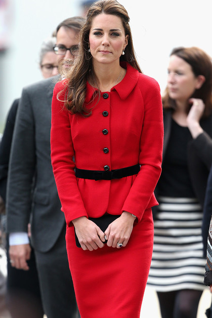 В Крайстчерче Кейт снова примерила красный цвет, надев костюм Luisa Spagnoli с черным бархатным поясом. Кейт и Уильям в традициях новозеландцев потерлись носами в знак приветствия со старшими представителями местного племени, а затем перешли к другим официальным встречам: пообщались с семьями, потерявшими близких во время землетрясения в 2011 году, встретились с пятью близнецами и посетили ботанический сад Visitors Centre.