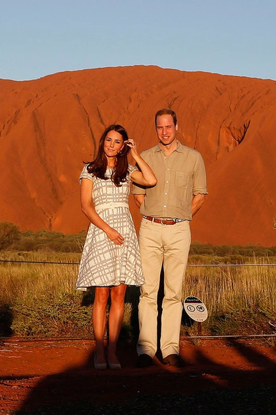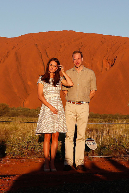Сегодня герцог и герцогиня Кембриджские посетили скалу Улуру, которая сформировалась около 680 миллионов лет и является одним из пунктов наследия ЮНЕСКО.