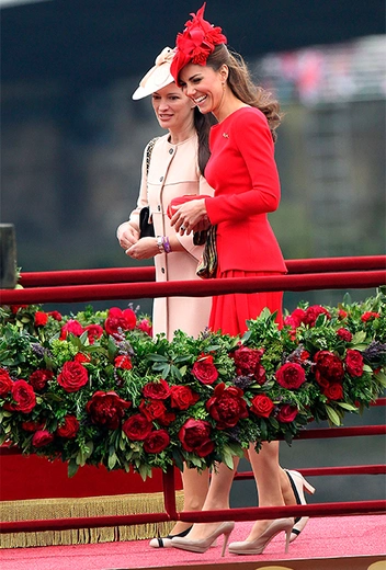 При этом многие забыли, как Кейт промахивалась с одеждой в первые годы замужества. Критикуя Меган за слишком «темный» наряд на крестинах принца Луи, хорошо бы вспомнить, эпический промах Кейт на праздновании юбилея правления Елизаветы II. Герцогиня Кембриджская тогда облачилась в красное, и было не очень понятно, то ли она намеревалась затмить всех присутствующих дам, включая виновницу торжества, то ли пыталась мимикрировать под фурнитуру королевского ботика, на котором проходило мероприятие (вся обивка его, кресла, ковры и даже цветы и штандарты были точно того же цвета).