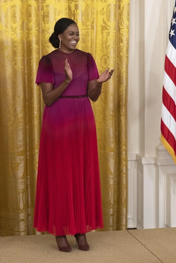 Мишель Обаме, в отличие от многих других предшественниц, удалось жонглировать двумя, казалось бы, разными ипостасями. С одной стороны, она была вовлечена в президентскую кампанию мужа и, как считается, участвовала в принятии им ключевых решений. С другой стороны, она сохранила за собой право быть иконой стиля. В своем гардеробе Мишель придерживалась разных фасонов: иногда это были юбки-солнце, которые делали ее фигуру более хрупкой, а иногда прямые силуэты с небольшим акцентом на талии. Менялись и предпочтения Мишель в вопросе обуви: порой она выбирала обожаемый высокий каблук, а порой делала ставку на удобные kitten heels или балетки (особенно, когда находилась рядом с мужем). Но некоторые вещи в стиле Мишель оставались неизменными. Например, то, что она всегда носила яркие принты и смелые оттенки: голубой, розовый, оранжевый, желтый. А еще, Обама смотрела в сторону американских, часто мало кому известных, дизайнеров — так ей удалось показать свою близость к избирателям.
