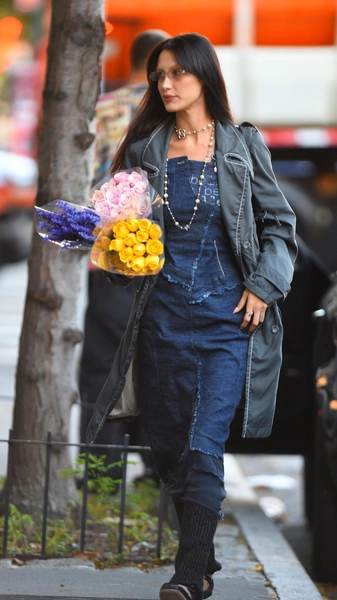 Эффектно деним смотрится с массивными украшениями, поэтому завершайте свои стильные аутфиты крупными жесткими браслетами, надевая их на каждое запястье, серьгами и перстнями. Подсмотреть самые модные аксессуары можно в коллекциях Хейли Бибер, Джиджи и Беллы Хадид (читайте также: Тест: сможете ли вы отличить модное платье от устаревшего?).