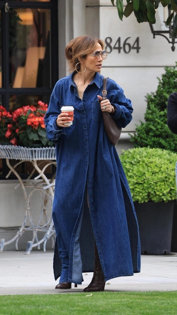 Платье-рубашка актуально всегда, в том числе и из денима. Оно может быть длиной до колена. как у Келли Брук, или же макси, как у Джей Ло. Как правило, такая модель идет всегда с поясом, что позволяет грамотно расставить пропорции, сделав акцент на талии, и выгодно подчеркнуть фигуру. Однако если вам нравится тенденция на оверсайз, повторить вы можете и ее: достаточно снять ремень и расстегнуть нижнее пуговицы платья, если оно обладает длинным подолом.