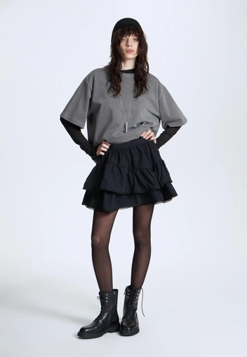 Как и юбка bubble, ярусная юбка будет в моде летом 2025 года. На этот раз, из-за отсылок к стилю бохо — оборки, кружево и множество ярусов считаются его ДНК. С такой юбкой хорошо смотрится едва ли не любая обувь: кеды, кроссовки, босоножки и, в том числе, модные вьетнамки на каблуке (читайте также: Для этого выхода повод не нужен: ярусную юбку весной наденут все модные девушки).
