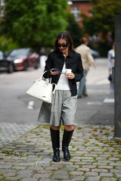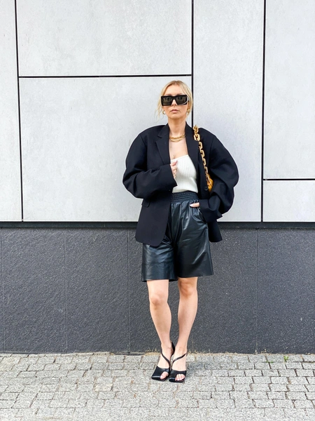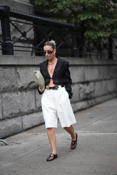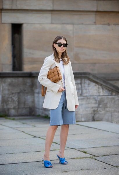 Еще один вариант, который подойдет как для деловой встречи, так и для неформальных посиделок с друзьями или романтической прогулки со второй половинкой. Желательно, чтобы бермуды сочетались по цветовой гамме с пиджаком, а вот под него можно надеть все, что душе угодно. Открытый топ, базовую футболку, классическую рубашку или кокетливую полупрозрачную блузу. Все зависит только от погоды, вашего настроения и конечного пункта назначения. Удачные примеры не так давно мелькали на показах Victoria Beckham, Jil Sander и Carven (читайте также: 7 украшений, которые идеально сочетаются с пиджаками — они точно у вас есть).