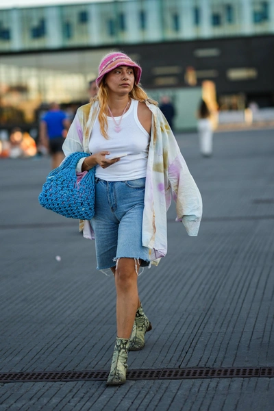 Даже знойным летом бывают прохладные дни, когда хочется укрыться от слишком настойчивого ветра. Решение проблемы простое и отвечает последним веяниям моды: наденьте с бермудами теплый свитер, джемпер или кардиган. Тут напрашивается стиль преппи (pre-college preparatory), в очередной раз ворвавшийся в мир моды. Для перевоплощения в стильную студентку достаточно подобрать гольфы, галстук в клетку, лакированные лоферы или кеды. Не только стильно и по-весеннему, но и тепло. А если вспоминать об учебе не хочется даже в таком формате, то можно ограничиться джемпером яркого цвета. Вдохновение для составления удачного образа вы найдете в весенне-летней коллекции Loewe (читайте также: Как подобрать сумку на каждый день: 5 лайфхаков стилиста).