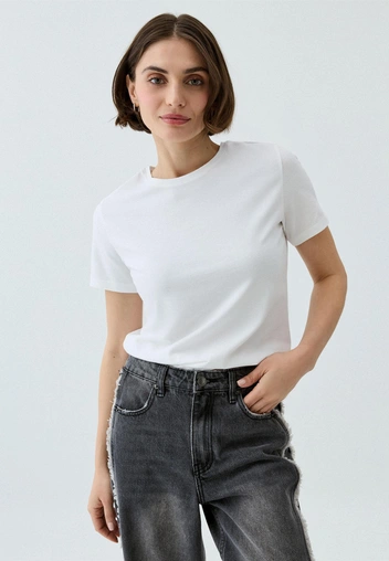 С базовой однотонной футболкой