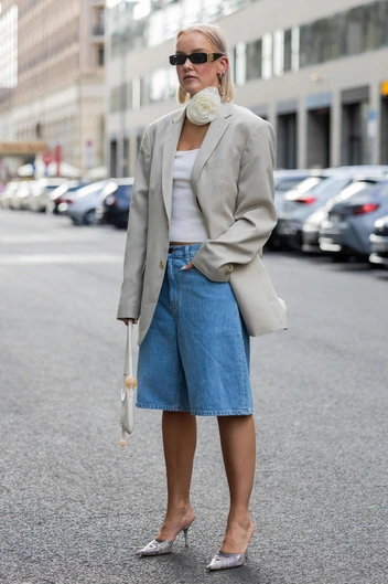 Еще один вариант, который подойдет как для деловой встречи, так и для неформальных посиделок с друзьями или романтической прогулки со второй половинкой. Желательно, чтобы бермуды сочетались по цветовой гамме с пиджаком, а вот под него можно надеть все, что душе угодно. Открытый топ, базовую футболку, классическую рубашку или кокетливую полупрозрачную блузу. Все зависит только от погоды, вашего настроения и конечного пункта назначения. Удачные примеры не так давно мелькали на показах Victoria Beckham, Jil Sander и Carven (читайте также: 7 украшений, которые идеально сочетаются с пиджаками — они точно у вас есть).