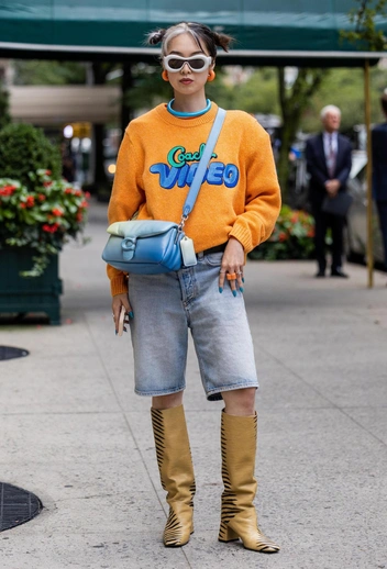 Даже знойным летом бывают прохладные дни, когда хочется укрыться от слишком настойчивого ветра. Решение проблемы простое и отвечает последним веяниям моды: наденьте с бермудами теплый свитер, джемпер или кардиган. Тут напрашивается стиль преппи (pre-college preparatory), в очередной раз ворвавшийся в мир моды. Для перевоплощения в стильную студентку достаточно подобрать гольфы, галстук в клетку, лакированные лоферы или кеды. Не только стильно и по-весеннему, но и тепло. А если вспоминать об учебе не хочется даже в таком формате, то можно ограничиться джемпером яркого цвета. Вдохновение для составления удачного образа вы найдете в весенне-летней коллекции Loewe (читайте также: Как подобрать сумку на каждый день: 5 лайфхаков стилиста).