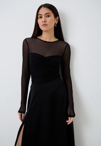 Не стоит бояться полупрозрачных материалов, ведь степень открытости в образе выбираете вы сами — дизайнеры и стилисты предоставили широкое пространство для маневра: прозрачные топы, боди, блузы сочетайте с брюками (классического кроя или карго), с юбками или массивными жакетами в качестве верхнего слоя.