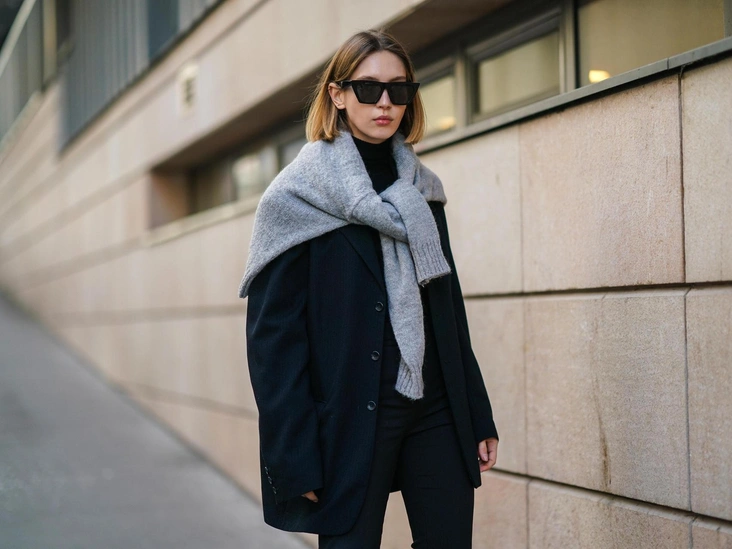 Помимо классических приемов стилизации трикотажа, модные девушки предлагают нарушить порядок следования между верхними и нижними слоями одежды. Для этого накиньте на плечи контрастный свитер поверх пальто или тренча. Образ станет многослойным, а небрежно наброшенный трикотаж станет не только акцентом, но и теплым шарфом.