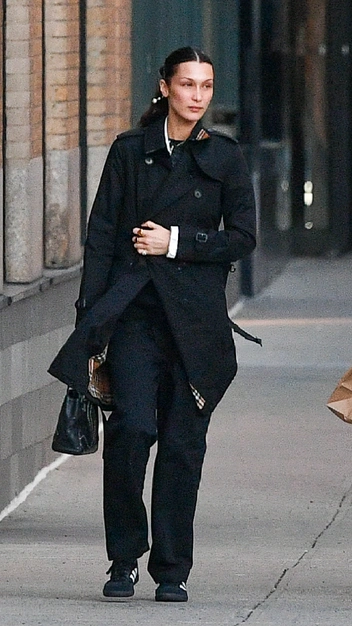 Американская модель уверена в себе и своем чувстве стиля. Девушка даже отказалась от помощи стилиста, решив действовать интуитивно. Все равно она уже давно заработала себе статус модного инфлюенсера. Однако помощь профессионала Белле иногда все же требуется. Например, когда она облачилась в мрачный образ с черными брюками, кроссовками и тренчем с мужского плеча. Получилось очень скучно и неинтересно.