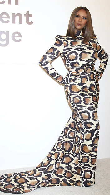 Анималистичный принт перестал быть сезонным трендом и превратился в настоящую константу в гардеробе современных модниц. Но всему есть предел, и Иман перестаралась с выбором платья для светского мероприятия. Принт на платье оказался таким активным, что сама модель за ним совершенно потерялась.