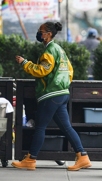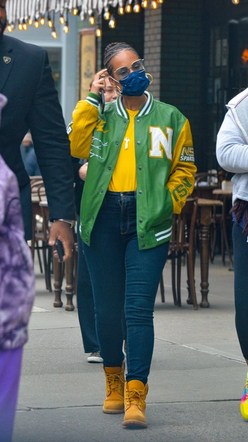 Путешествие на десять лет назад совершила и Алиша Киз, но вместо модной ностальгии получилась почти катастрофа. Вопросов к яркой футболке и популярному сейчас бомберу нет, а вот джинсы скинни, заправленные в «тимберленды» — худшее воспоминание о моде нулевых. Если бы певица поменяла хотя бы джинсы на модель прямого кроя или с широкими штанинами, это спасло бы весь образ (читайте также: Где купить самый модный бомбер: 10 курток на любой бюджет, которые стали хитами сезона).