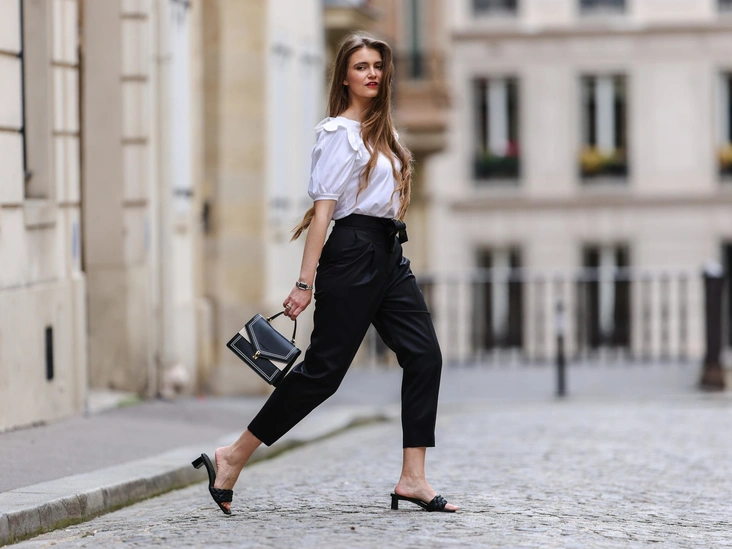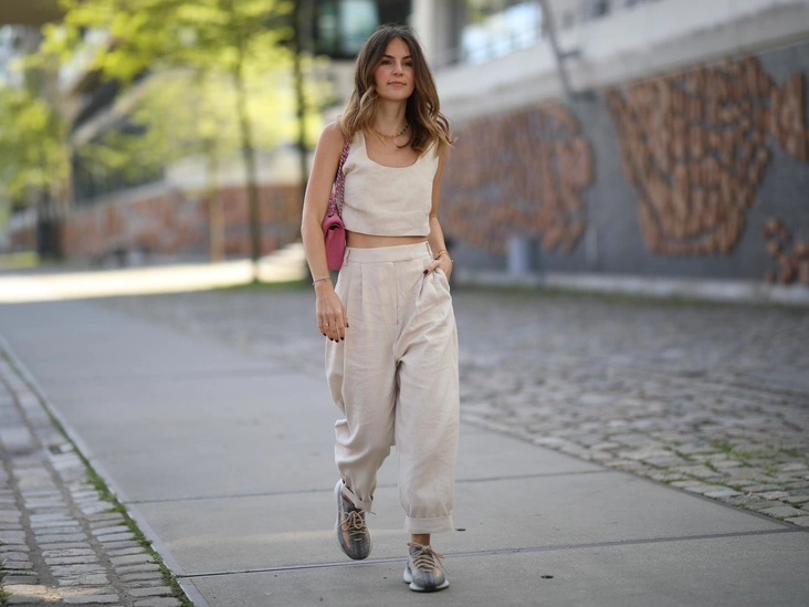 Свободные классические прямые брюки со стрелками и высокой посадкой — еще один вариант, чтобы создать оптическую иллюзию и скрыть все выступающие части. Эта модель легко впишется в ваш гардероб и подойдет как под офисные, так и повседневные луки. Стрелка, которая идет по всей длине брючин, визуально вытянет ноги и добавит женственности и элегантности. Идеальным дополнением к образу станет обувь на каблуке (читайте также: Снимите это немедленно: 5 ботинок на шнуровке, которые сделают образ безвкусным).