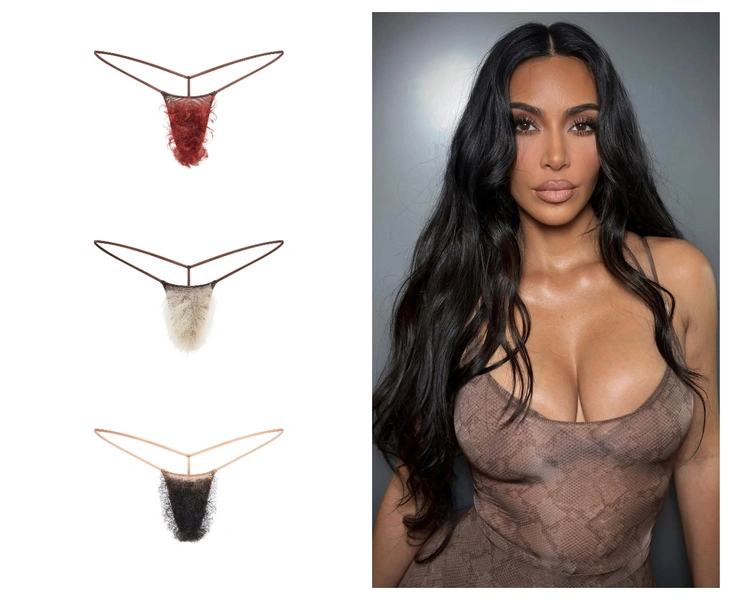 В итоге именно такая мода в конце концов привела к неожиданному (или все-таки ожиданному) релизу от Skims — трусиков с искусственными волосами. Прозрачная эластичная сетка, тонкие бретельки и кудрявые или прямые «волосы» — смелое и эпатажное решение от Ким Кардашьян, уже не первый раз подтверждающей статус лидера фэшн-провокаций. Напомним, что до этого она уже выпускала нечто шокирующее: бюстгалтеры с имитацией сосков (nipple bra) и съедобное белье, которое наделало не меньше шума, чем новый дроп Ким (читайте также: Феномен Skims: как рискованный стартап Ким Кардашьян превратился в миллиардный бизнес).