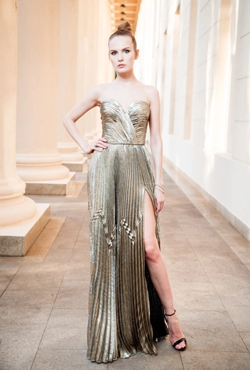 Уже третий год ювелирным партнером становится компания Mercury, а поэтому на дорожке мы увидели немало роскошных аксессуаров из белого золота с бриллиантами, изумрудами и сапфирами из коллекций Classic и Color. Кроме того, Mercury изготовили награды для победителей. Верхняя часть, символизирующая солнце, выполнена из бронзы, серебра и эмали, основание – из редкого вида итальянского мрамора, на котором расположена табличка из золота с логотипом бренда.