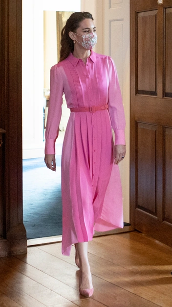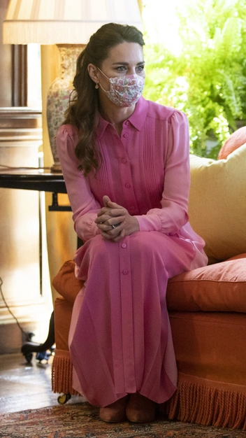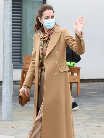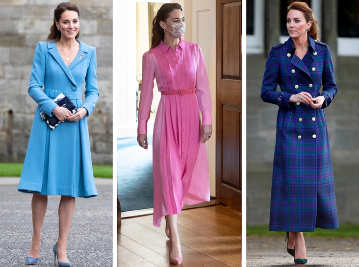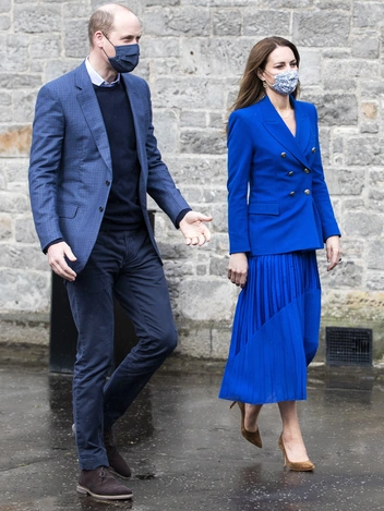 Первый выход герцогини Кембриджской в Шотландии заслужил сравнения со стилем принцессы Уэльской (читайте также: Точь-в-точь: герцогиня Кейт в полной копии образа принцессы Дианы). Кейт прибыла в Престонпанс в комплекте, похожем костюм, но на самом деле составленном из вещей двух разных брендов. В отличие от своей свекрови, также нередко выбиравшей цвет электрик, герцогиня разбавила яркий ансамбль обувью и сумкой из светло-коричневой замши. Также на Кэтрин была маска с синим цветочным принтом — похожие она демонстрировала во время своего предрождественского турне по Соединенному Королевству.