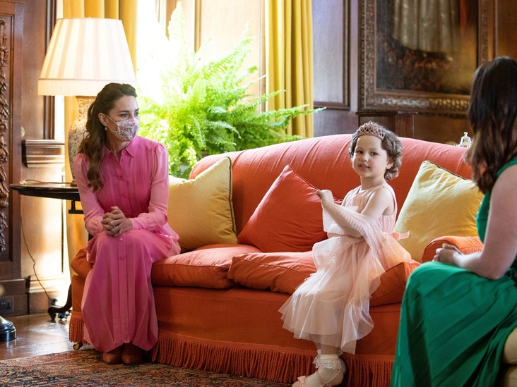 Последний день тура выдался для Кембриджский очень насыщенным. Следующим пунктом назначения стала эдинбургская резиденция королевской семьи, где Кейт встретилась с Милой Снеддон — пятилетней девочкой, которая борется с лейкемией. Герцогиня появилась в воздушном розовом платье, которое дополнила лодочками в тон. Выбор наряда был не случайным — перед поездкой Кэтрин говорила с Милой по телефону, и девочка рассказала супруге принца, что очень любит розовый цвет и хотела бы увидеть в розовом платье герцогиню. Кейт сказала, что обязательно наденет такой наряд на их личную встречу и сдержала обещание.