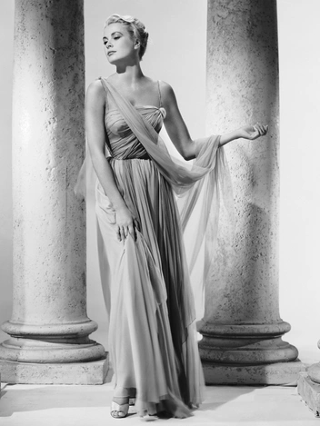 Грейс Келли справедливо считается одной из величайших икон стиля. Ее гардероб по-прежнему остается образцом шика, лоска и одновременно умеренности. Значительная часть ее кинообразов обыгрывает образ греческой богини: в них много драпировок, осторожной асимметрии и летящих тканей, подчеркивающих легкий стан актрисы.