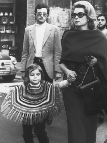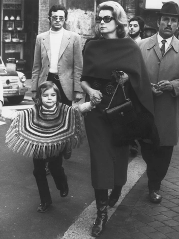 Грейс очень шли узкие юбки миди и крупные очки. В этом ансамбле она появилась в компании своей дочери Стефани в брюках и вязаном пончо на улицах Рима.