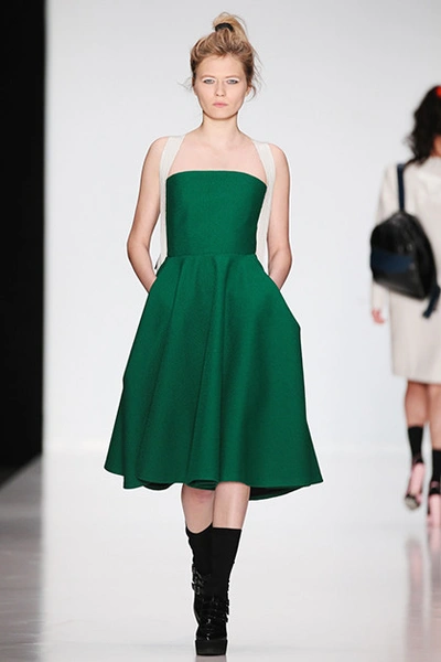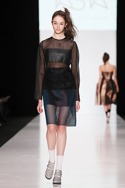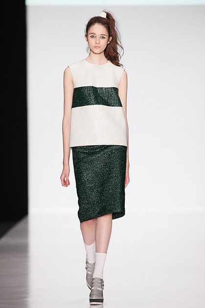Третья украинка в нашем списке – Яся Миночкина, и снова очень перспективная. Яся уже в третий раз участвует в лондонской Неделе моды. Она делает очень и очень современную одежду для молодых девушек, работает с полиамидной сеткой и вдохновляется уличной модой. Ее можно назвать нашим Симоном Портом Жакмюсом – те же бомберы, шорты, носочки, розовый и сочетание белого с темно-зеленым.