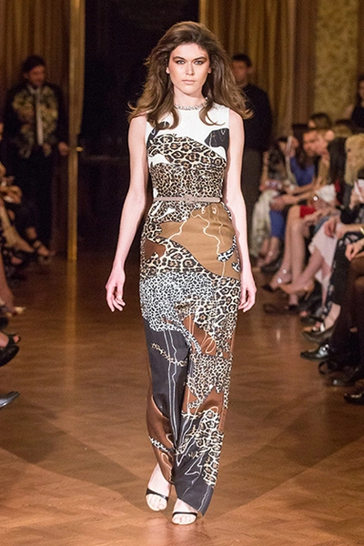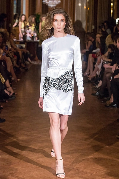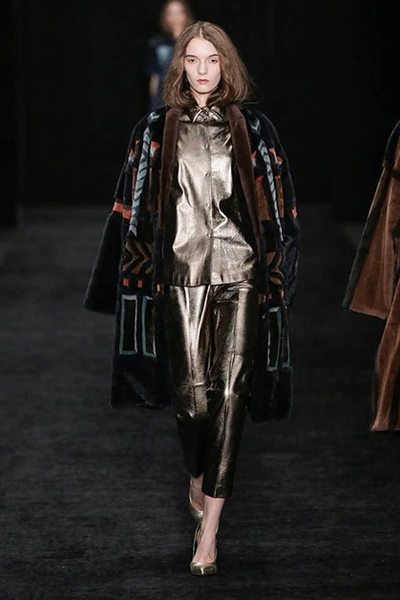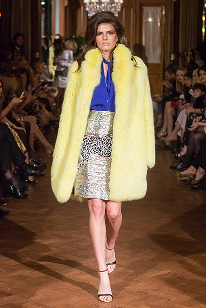 У Терехова, как всегда, платья – его визитная карточка: струящиеся в пол, мини, с запахом. Из нового – леопардовый принт в сочетании с пастельными цветами, небесно-голубым, розовым и лимонно-желтым. Плюс пайетки, невольно отсылающие к Ашишу Гупте, и голографические, переливающиеся рисунки. Примечательно нетипичное для наших широт сочетание шуб с очень открытыми босоножками на каблуке. Но с Тереховым все это будут носить – и блестящие мини-юбки, и цветной мех, и свитеры и кардиганы из мохера с силуэтами леопардов и летние пальто, опять короткие, снова с набивкой, еще раз блестящие.