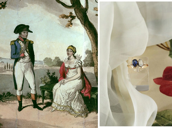 Наполеон I Бонапарт был ценителем ювелирных украшений и преподнес Жозефине Богарне кольцо «Toi et Moi», которое было выполнено из золота, а в центре расположились друг против друга два камня: бриллиант и сапфир грушевидной огранки. Вес каждого камня не превышал карата.