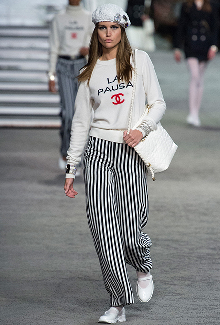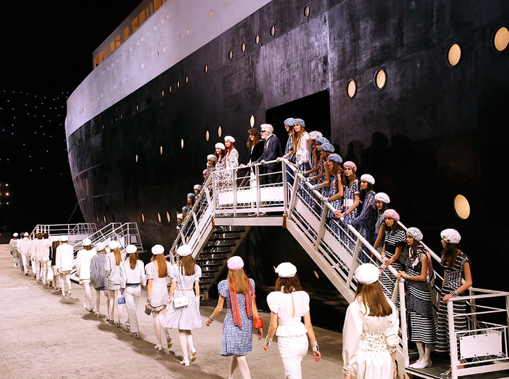 3 мая в парижском Гран-Пале прошел показ круизной коллекции Chanel. На этот раз под куполом дворца Карл Лагерфельд построил самый настоящий корабль, получивший название La Pausa — в честь знаменитой дачи самой мадемуазель Шанель, которую та купила на Лазурном берегу.