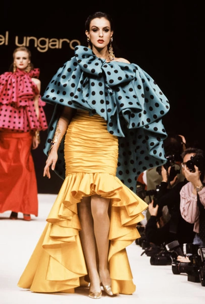70-е и 80-е годы, десятилетия расцвета бренда Emanuel Ungaro, были дикой и самой эклектичной эпохой в моде – временем, когда устаревшие и консервативные правила правила отошли на второй план, и женщины внезапно смогли носить абсолютно все, что хотели: бахрому и перья, рваный деним и простые ночные рубашки. И несмотря на приверженность Эмануэля старомодной элегантности, Унгаро поразительно точно чувствовал время, в котором он жил.