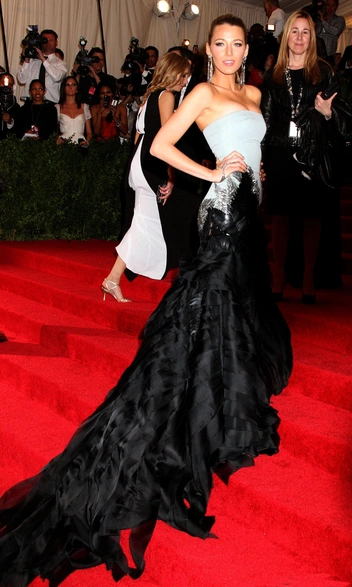 Punk but make it fashion — говорит наряд Блейк Лайвли на Met Gala 2013 года. Вечер был посвящен влиянию панк-культуры на модную индустрию, поэтому звезда решила совместить элегантную эстетику вечерних нарядов с дерзкими элементами из субкультуры.
